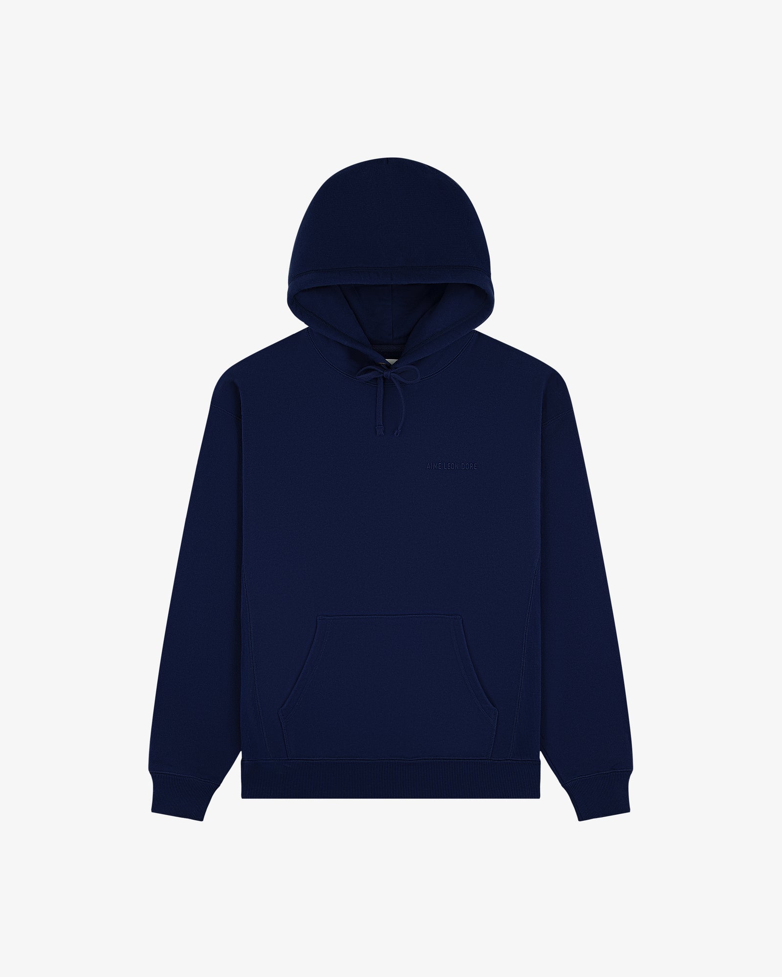 • Navy hoodie• Heavy loop back fleece fabric• Embroidered logo at chest• Metal eyelets• Flat braided drawstrings• Drop shoulder fit• Kanga patch pocket at front• Ribbed cuffs, hem, & side panels• Features branded woven loop label• 100% Cotton• Machine wash• Made in Vietnam